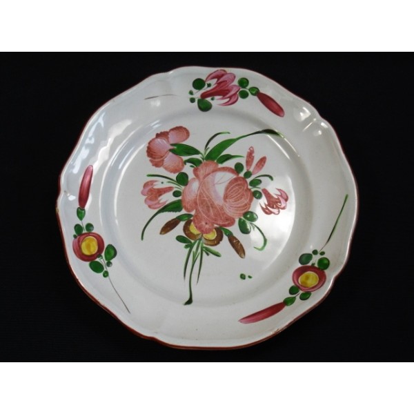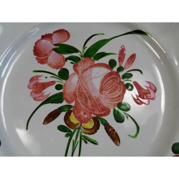 Old earthenware dish in taste Islettes, decorated with flowers, XIXth.