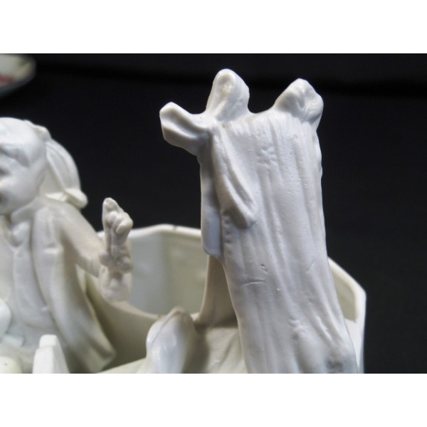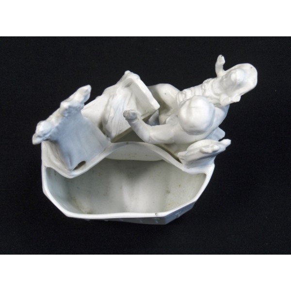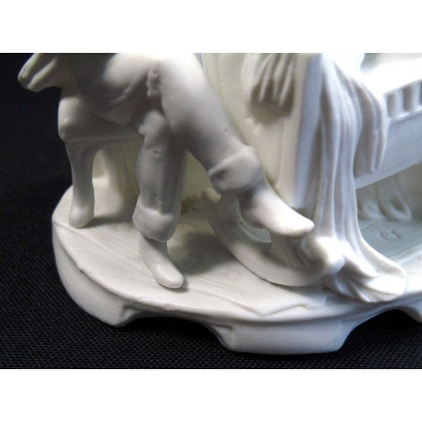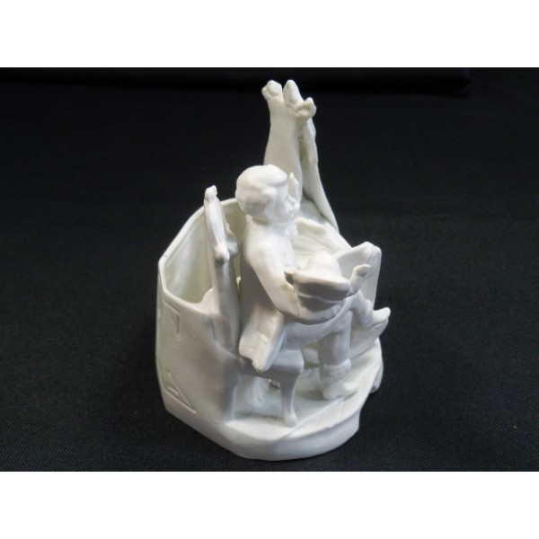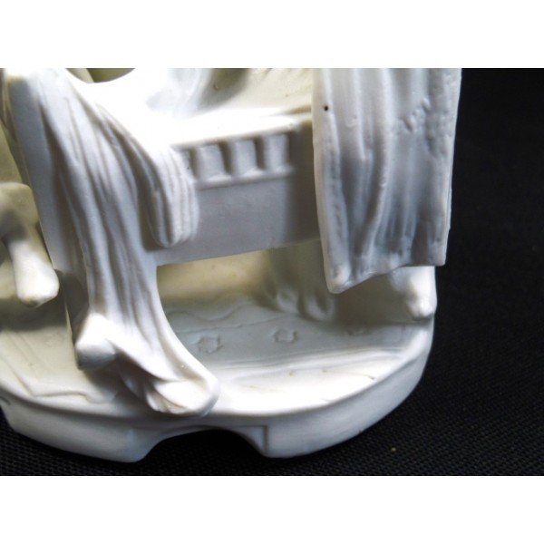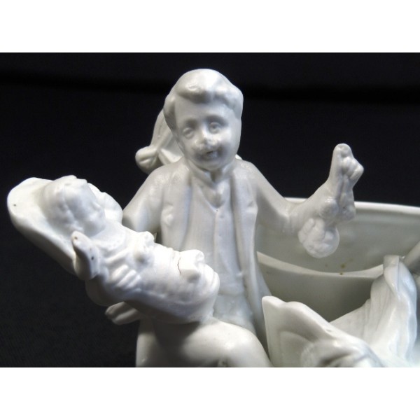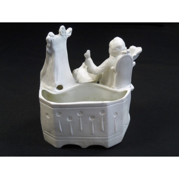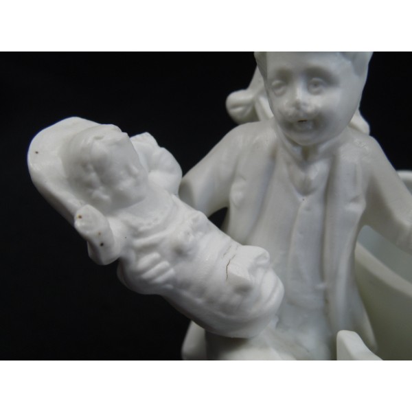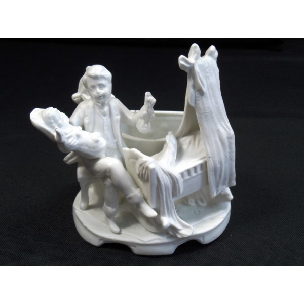 Father bisque stage and her child in the cradle, making flower girl, numbered and signed DRGM 7160.