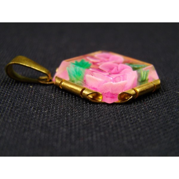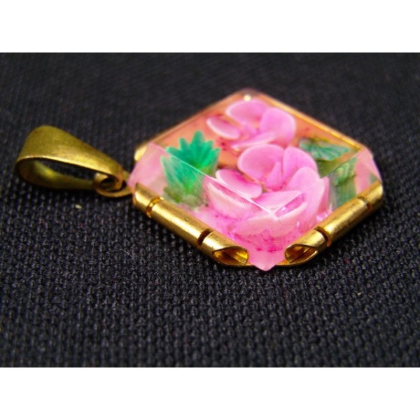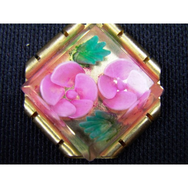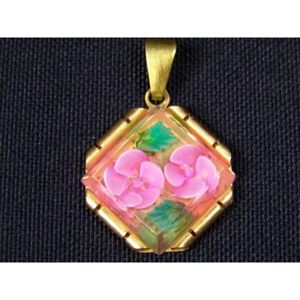 Pendant gold metal floral pattern inclusion in a plexiglass, 1940.