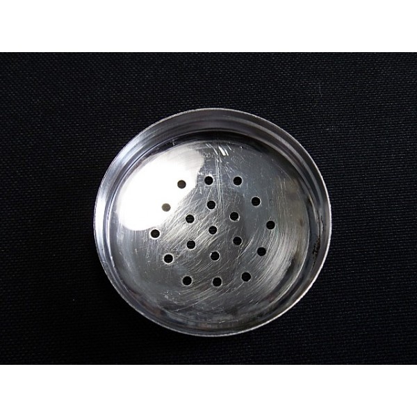 Sucrier à saupoudrer en verre moulé et couvercle en acier chromé, vers 1940.