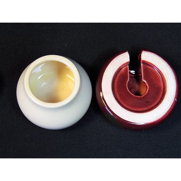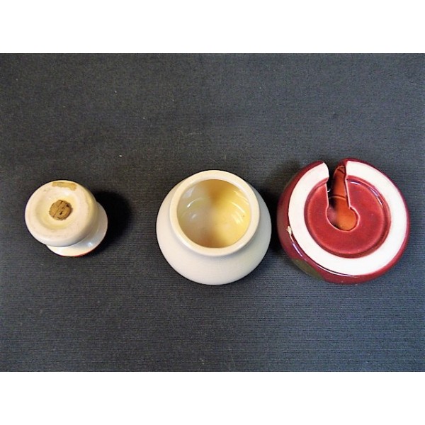 Set of salt and pot mustard earthenware shaped mushroom.