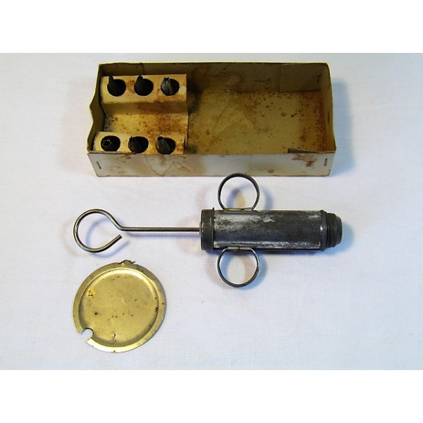 Dimensions: length 10,5 cm syringe, diameter 3 cm.