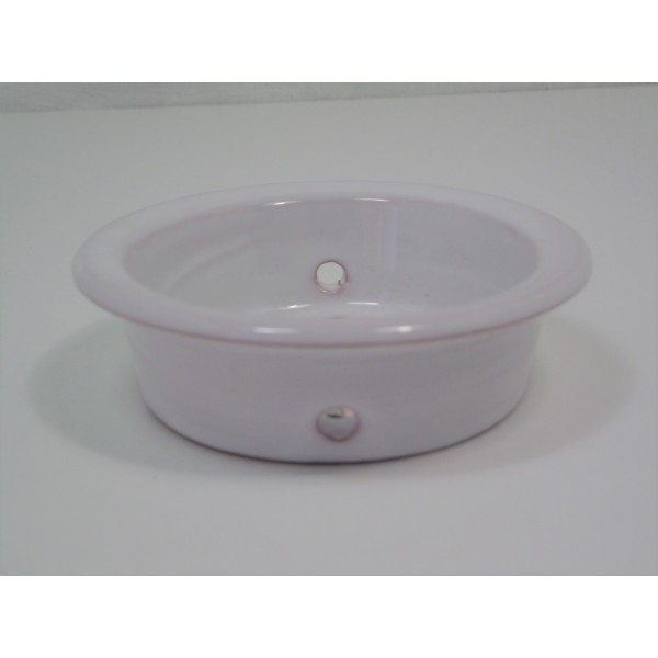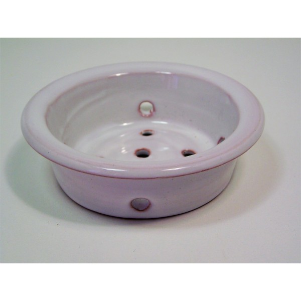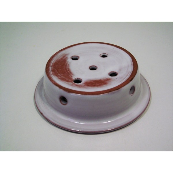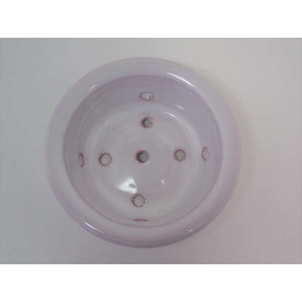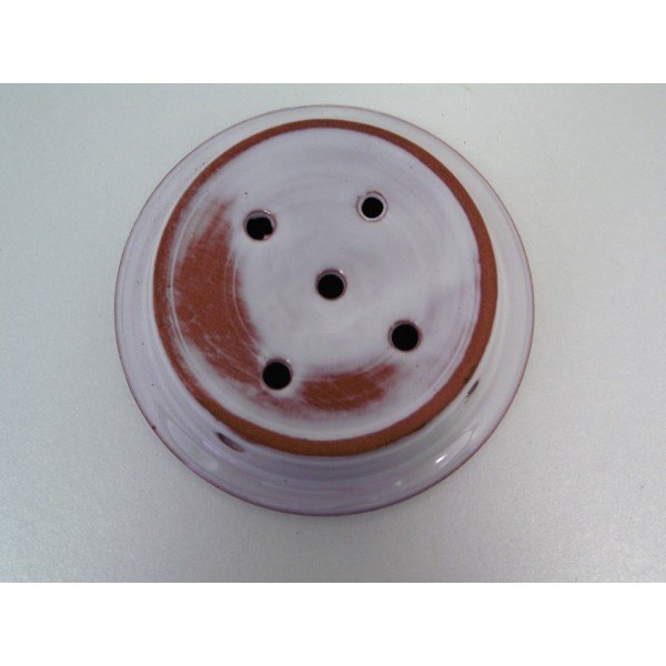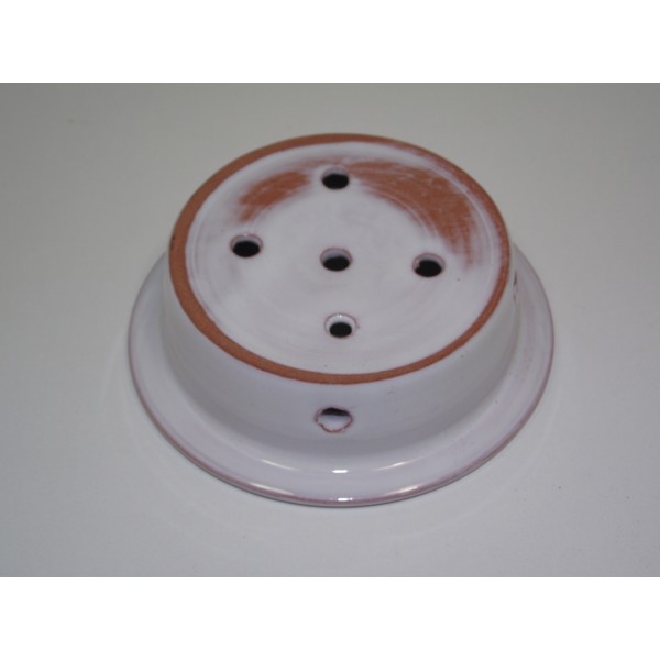Small white enamel terracotta strainer for small cheese, 5 holes in the bottom, 4 on the sides.