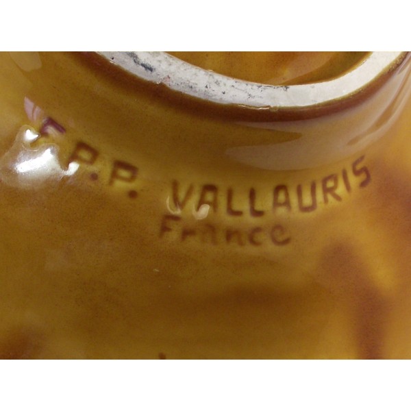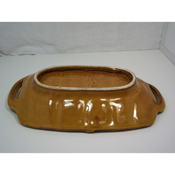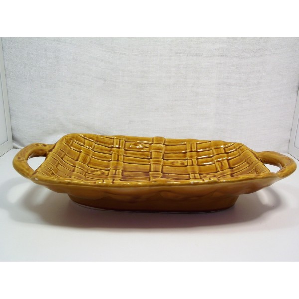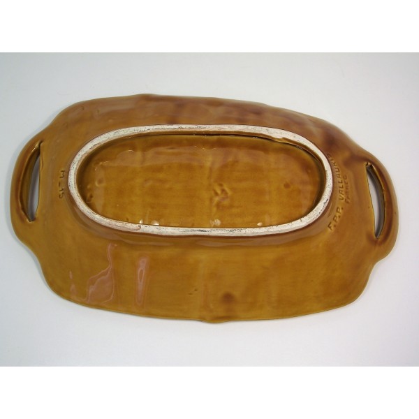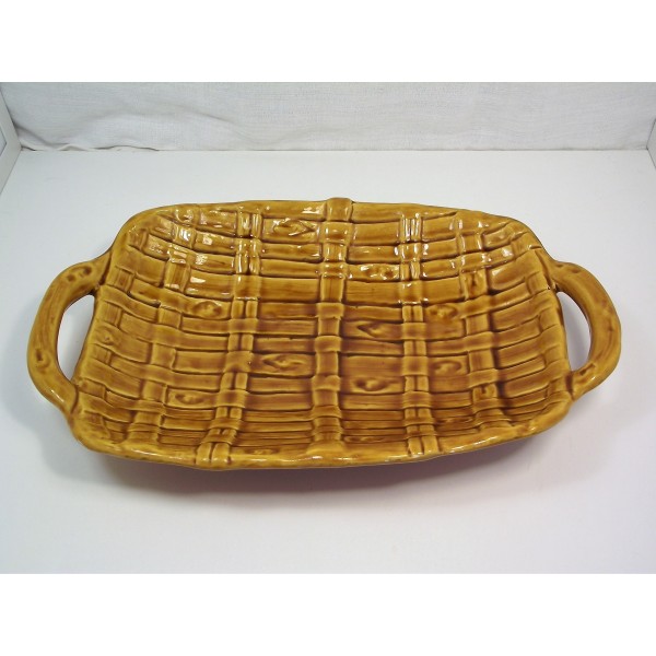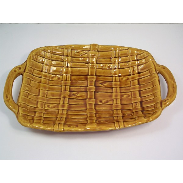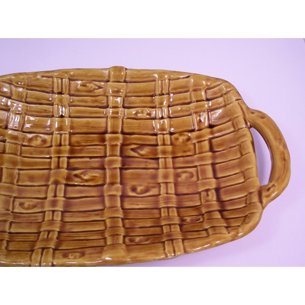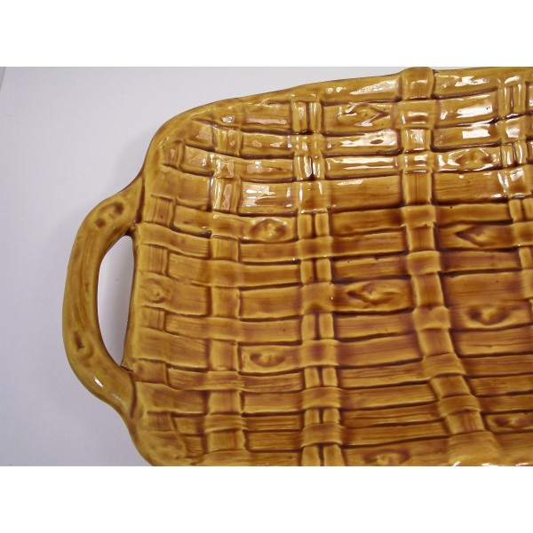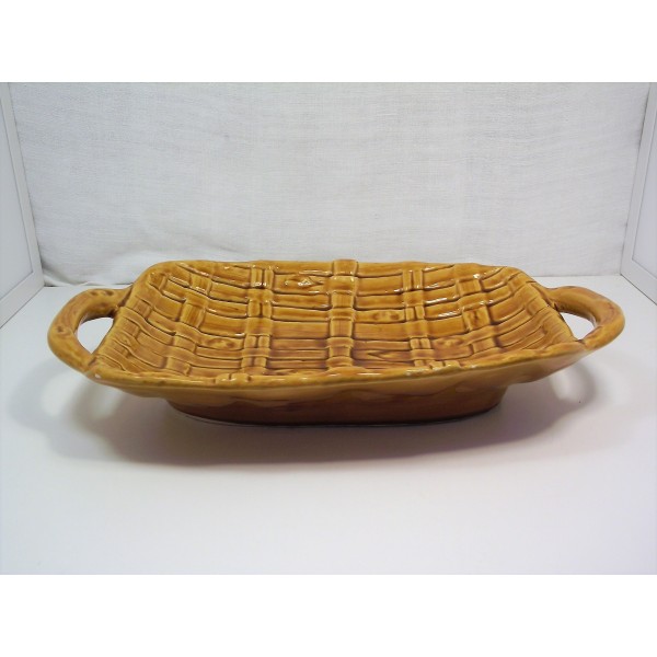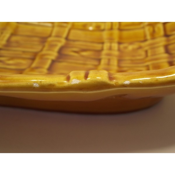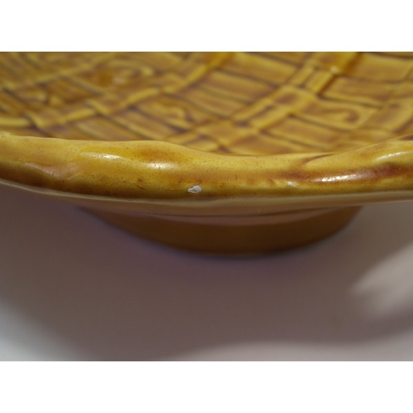 Slip ceramic fruit bowl, stamped FPP Vallauris France, imitation fiber weaving, circa 1970.