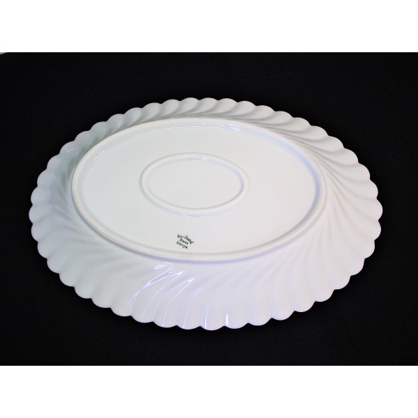 Slightly hollow oval meat dish in fine porcelain from Haviland in Limoges, torso model with blue cherry decor, stamped.