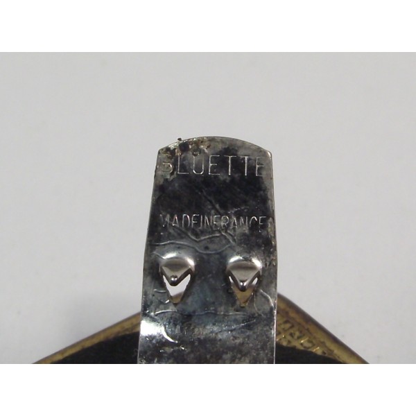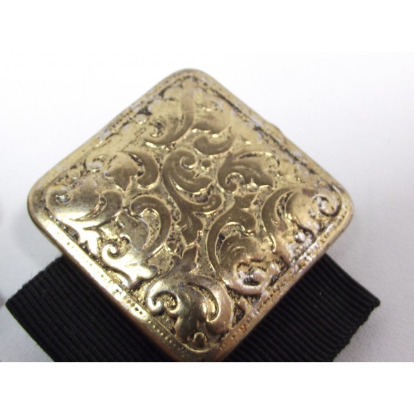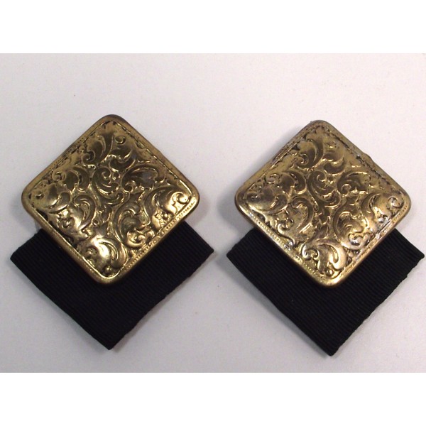 Pair of clip buckles for shoes, circa 1960, in gilded metal and fabric.