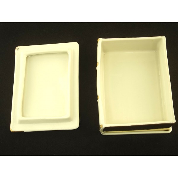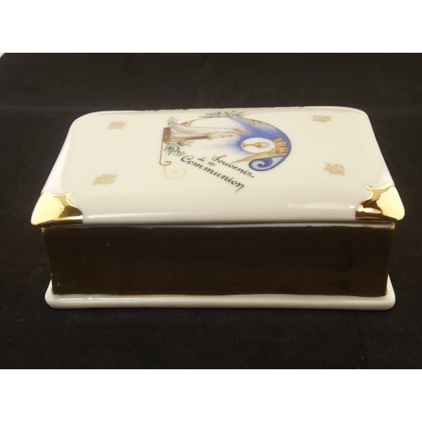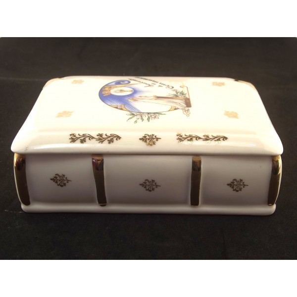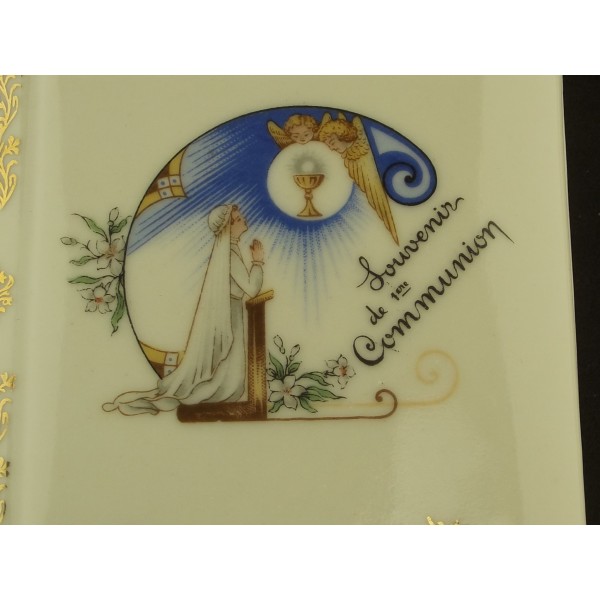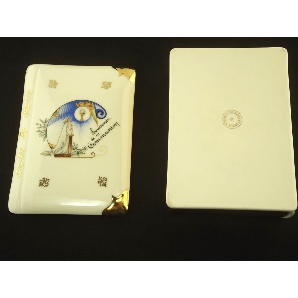 Limoges porcelain candy box paste and enamels, in the shape of a book (bible) souvenir of 1st communion, gilding.