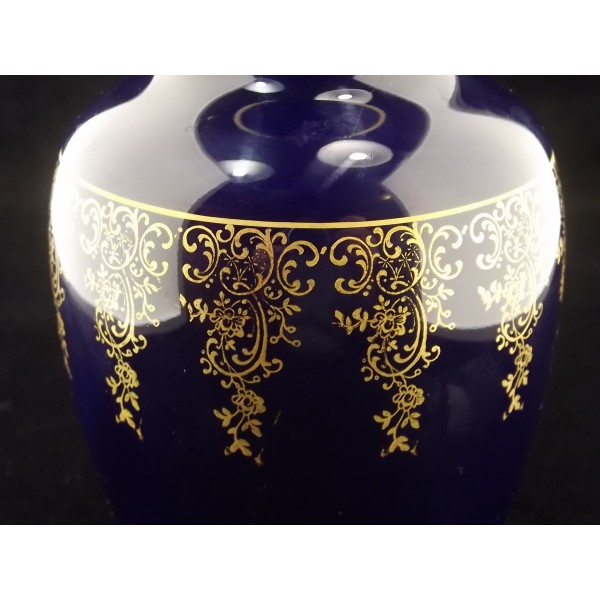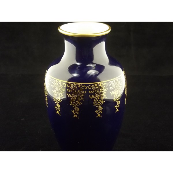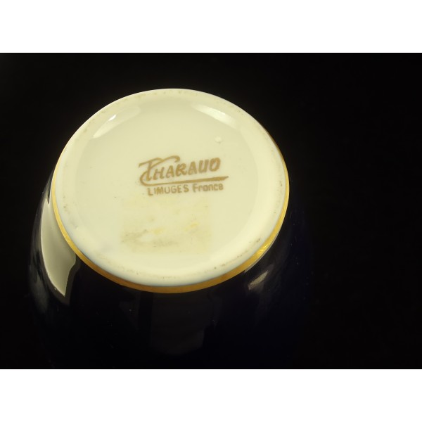 Vase balustre ancien Camille Tharaud Limoges bleu de four/cobalt décor doré