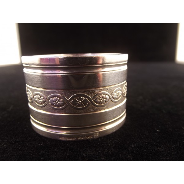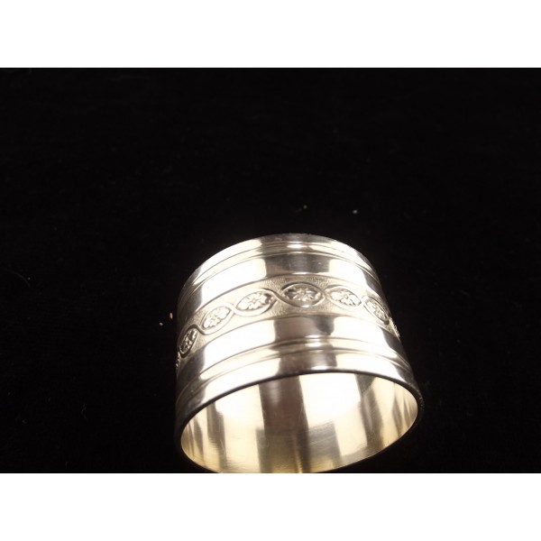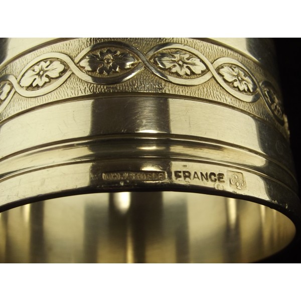 Oval napkin ring in silver-plated metal, Christofle hallmark, decorated with a frieze of foliage, Villeroy model.