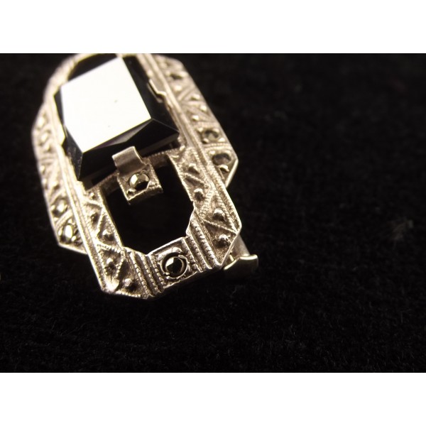 Art Deco silver brooch with hematite and marcasites