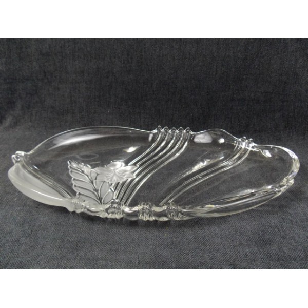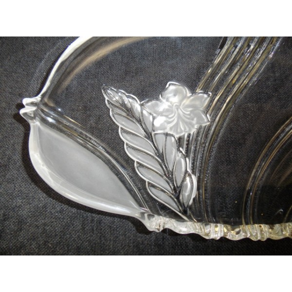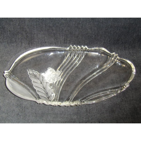 Oval tray molded glass floral etched.