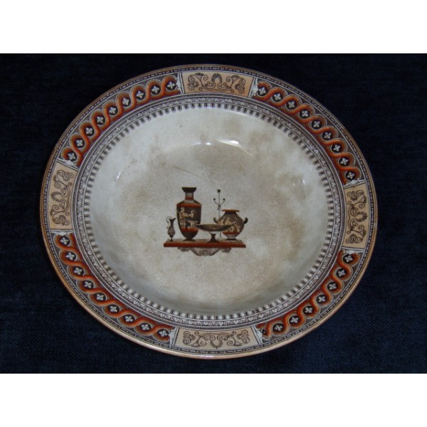 Earthenware soup plate Creil and Montereau Etruscan vases model