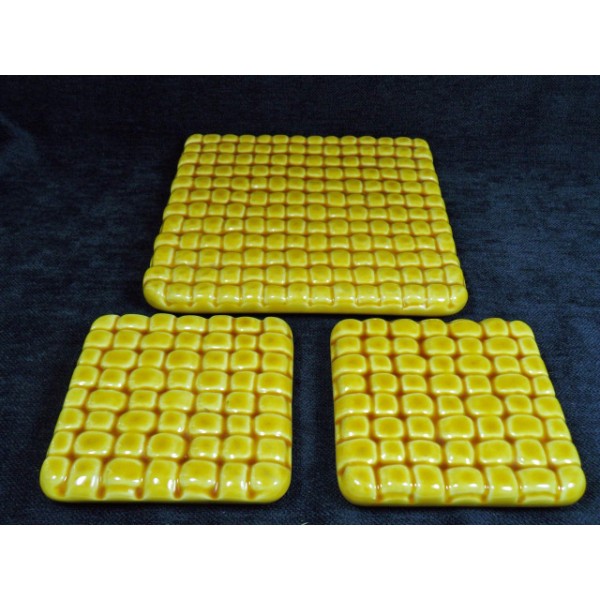 Dimensions: table mat 21 x 21 cm, coasters 12 x 12 cm.