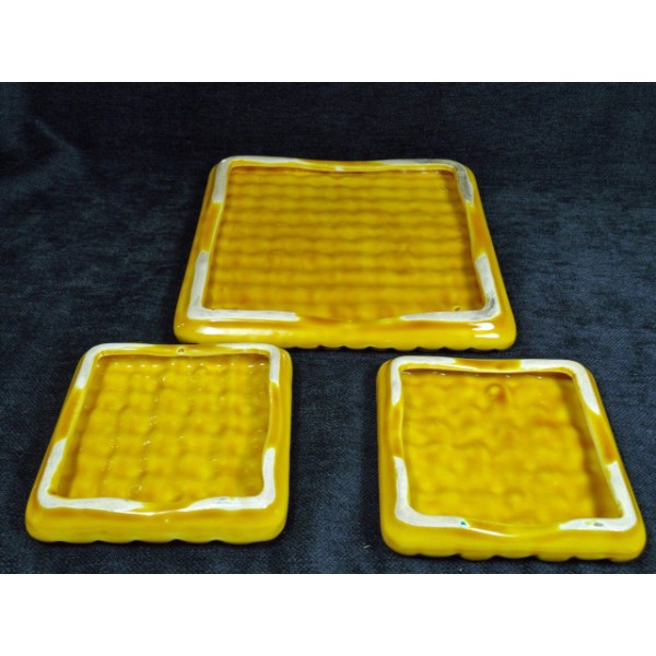 Earthenware slip assembly, composed of a bottom plate and two coasters, imitating a braiding straw.