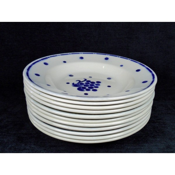 Set of 10 bowls earthenware stamped Moulin des Loups and Hammage Daunou pattern, decor blue clusters.