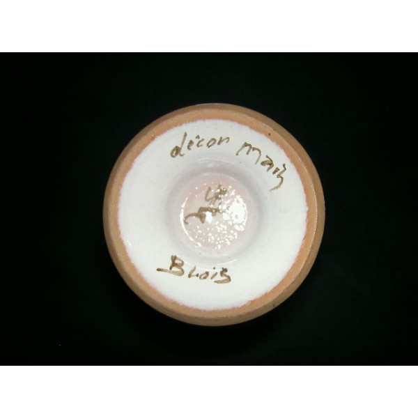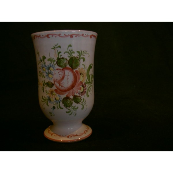 Cute little vase on pedestal earthenware Blois floral hand painted.