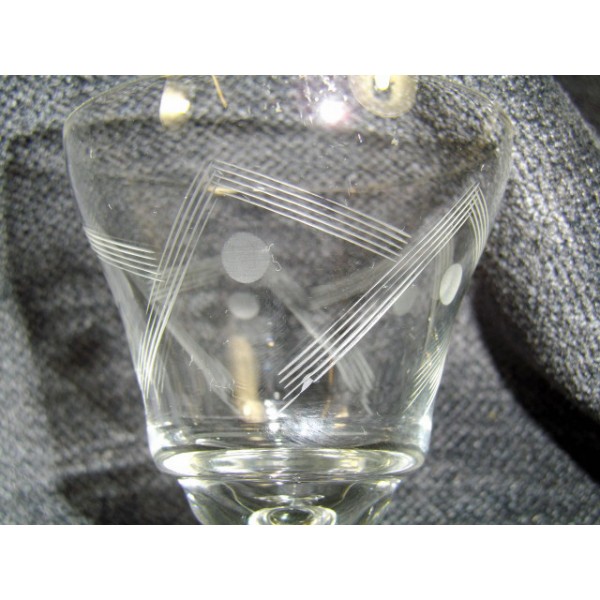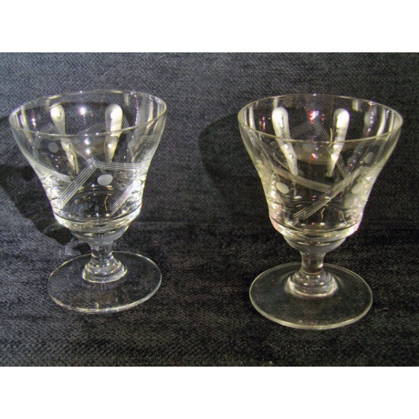 Verres à pied anciens pour le vin cuit 2 pièces, à décor gravé de forme originale