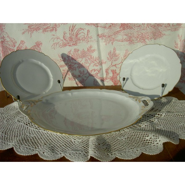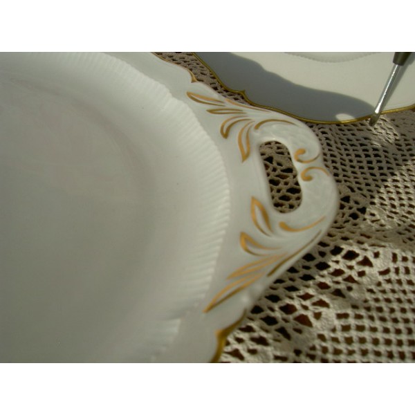 Flat cake old Limoges porcelain manufactory Haviland. It is white embellished with gold reliefs. Receive a gift two dessert plates of the same service!