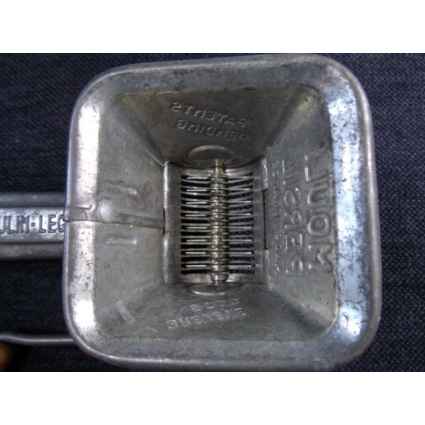 Grater "mouli parsley" creation "mill vegetables", 50s, small wooden handle, made in France, aluminum.