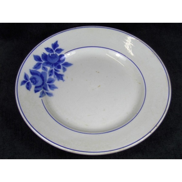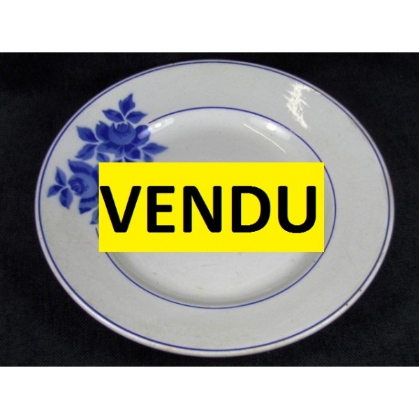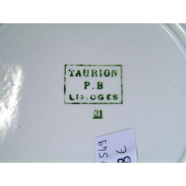 Round earthenware dish Taurion in Limoges, blue flower decoration, 20/30 years