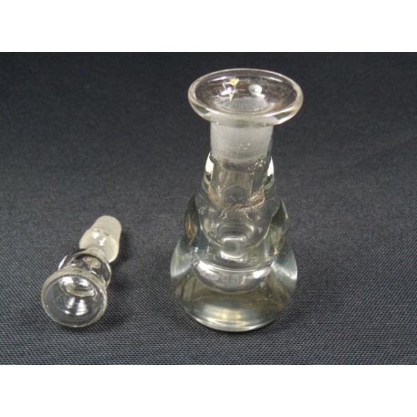 Small perfume bottle molded glass sold with a matching but not original cap.
