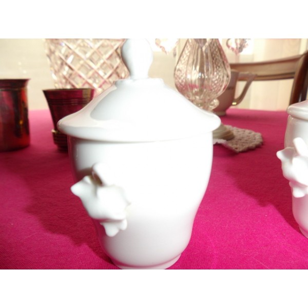 Set of 2 small old cream white porcelain pots Paris