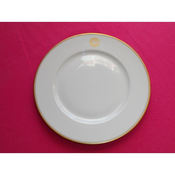 Ship Plate of Normandy Limoges porcelain made by Haviland and decorated by Jean Luce in Paris, 30s decor net gilded monogram and CGT (General Transatlantic Company).