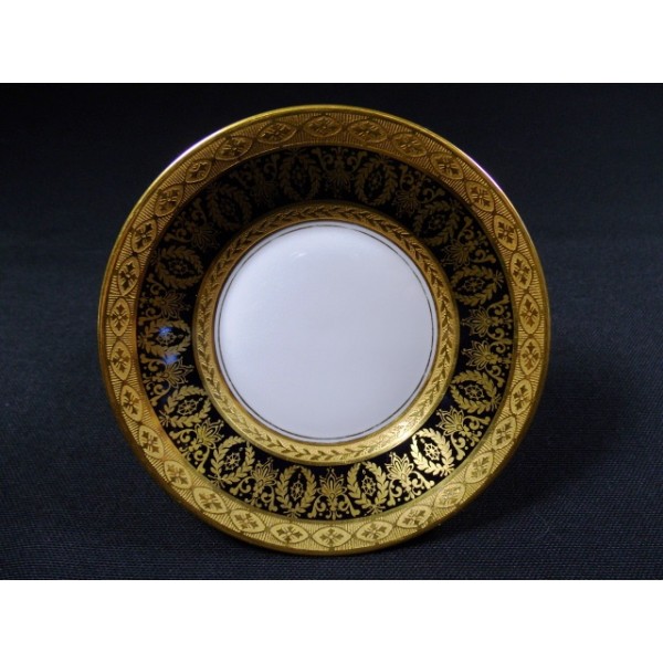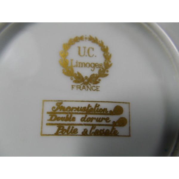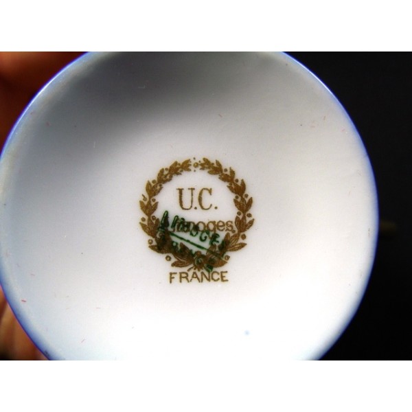 Coffee cup Limoges porcelain (with its saucer) inlay dual CPU brand gilding polished agate blue on the oven.