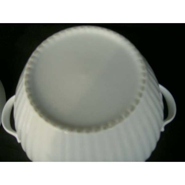 Lovely white porcelain tureen, cover decoration pinecone, relief Spline, 2 handles.