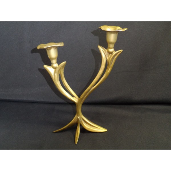 Lovely candelabra / candlestick / candle holder art nouveau brass screw-shaped sconces flower.