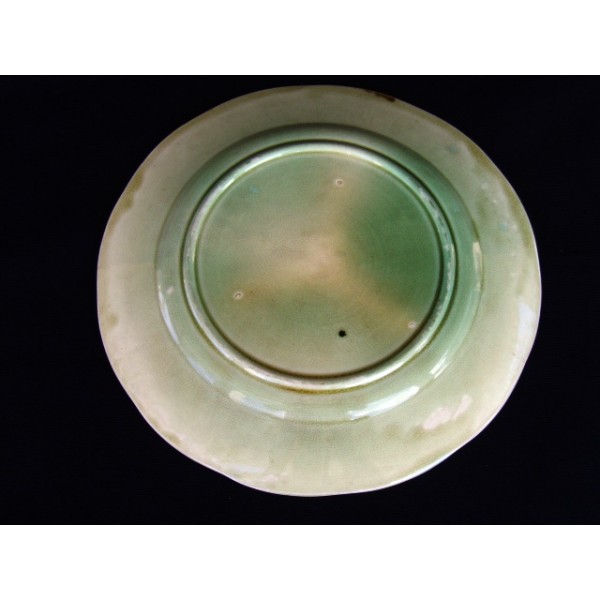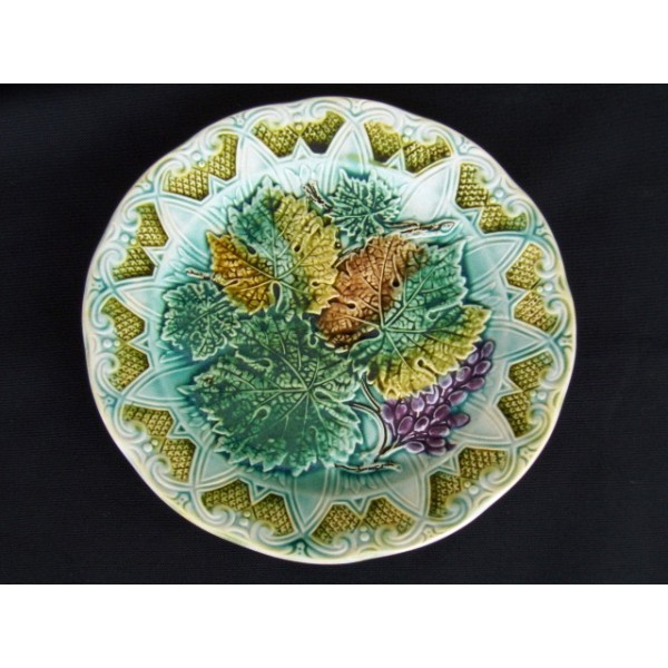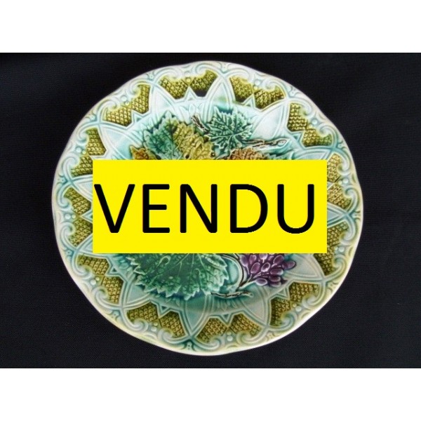 Earthenware plate slip, ancient, vine leaf decoration and cluster, unbuffered or signature.