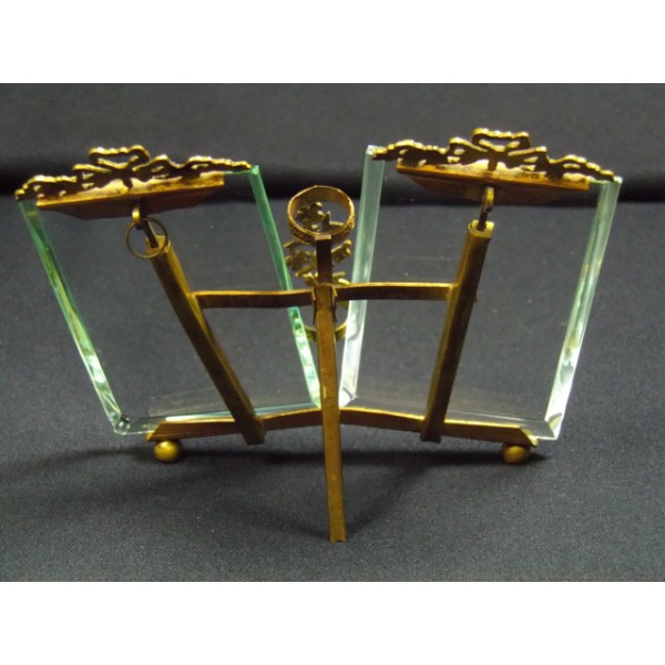 Photos wallet or old portraits, brass studs (or bronze), two portraits, knot motif, with the center a bunch of box holder for devotion.