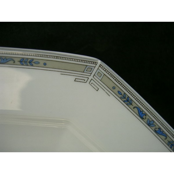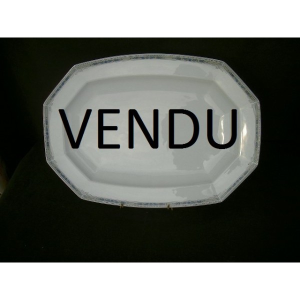 Long flat octagonal porcelain Limoges-stamped Jammet Seignolles model Broadway, in perfect condition.