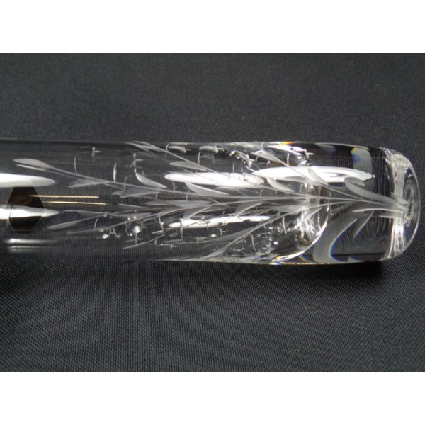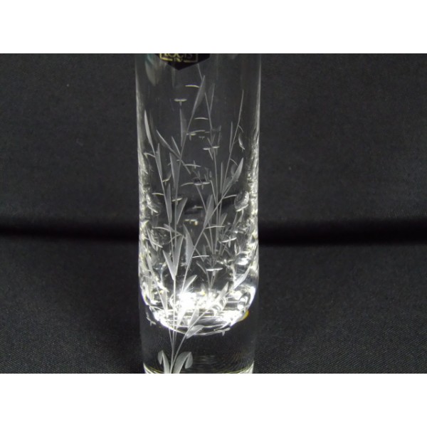 Crystal vase with lilies Saint Louis, engraved decoration of Muguet, never used, still bears the label Cristal Saint Louis France, stamped (engraved) background Crystal St. Louis France.