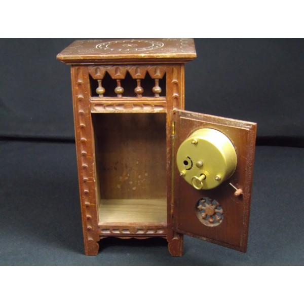 Clock built into a carved doll upright type Breton cabinet.