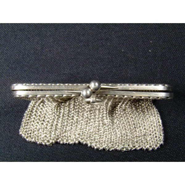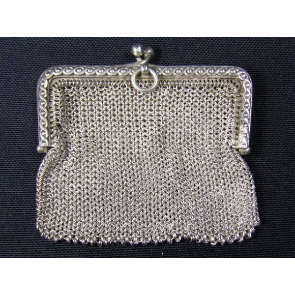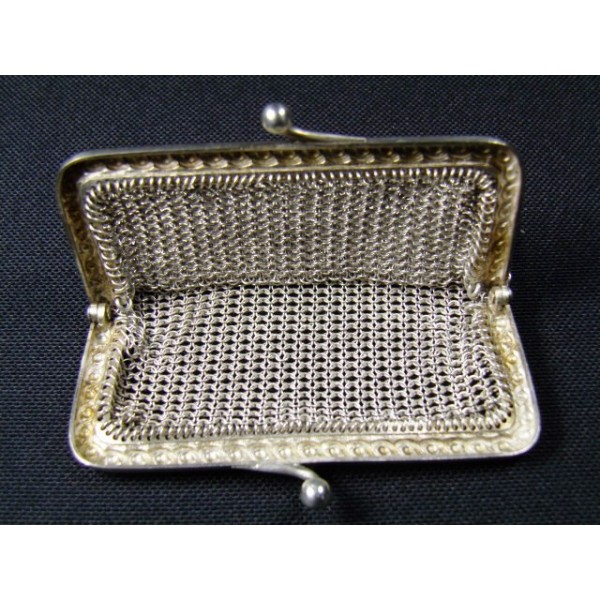 Little purse made of solid silver, rectangular in shape, decorated with an interlaced amount, equipped with a small ring to be attached to a lady, late nineteenth century.