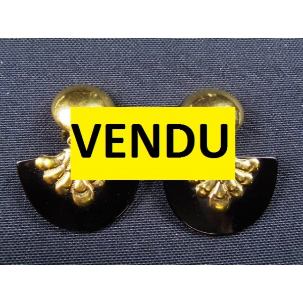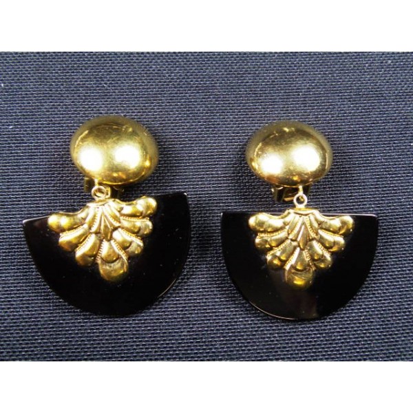 Beautiful pair of earrings style of art deco earrings clip gold metal and application of gold metal on black opaline glass plate forming a semicircle