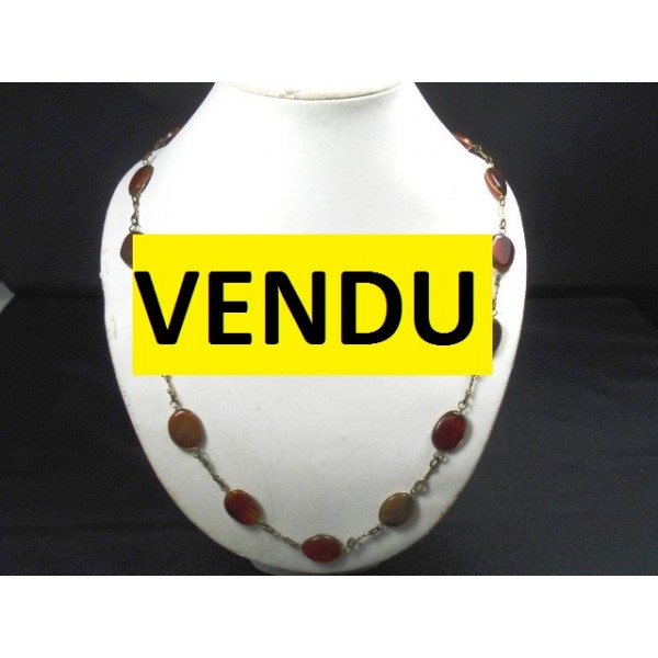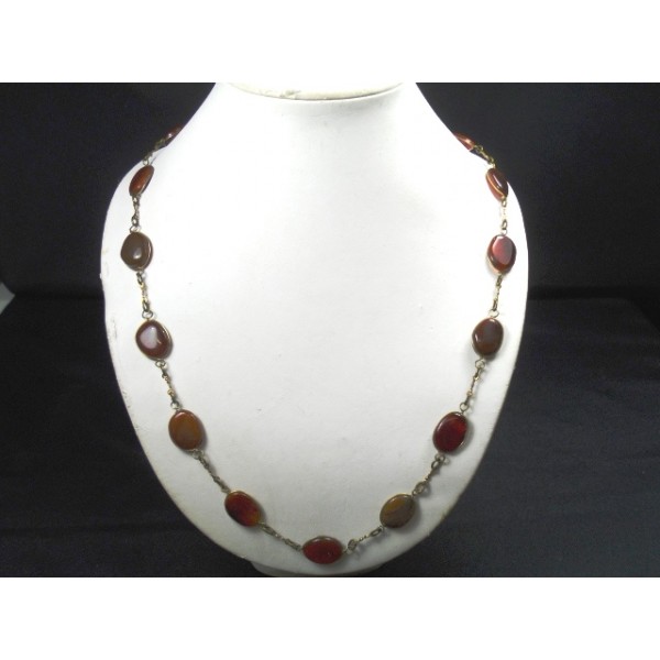60/70 necklace, gold metal, decorated with carnelian 16 without clasp, to put on.