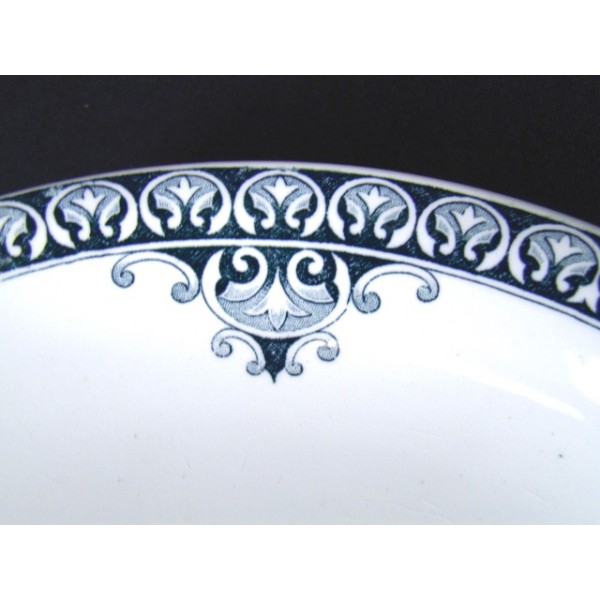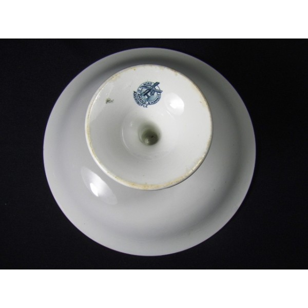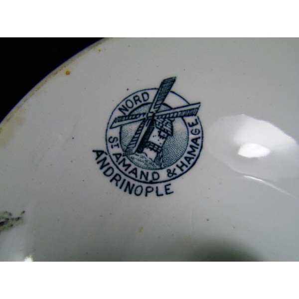 Compotier old tiled St Amand and North Hammage model Adrianople with blue decoration on ceramic device, buffer under the cut.