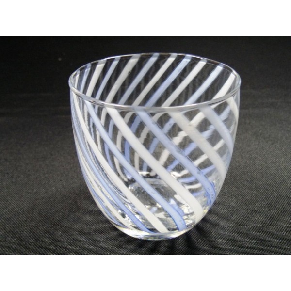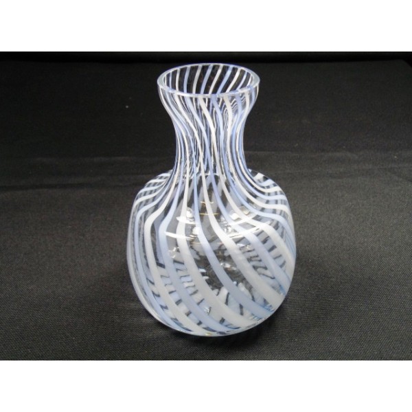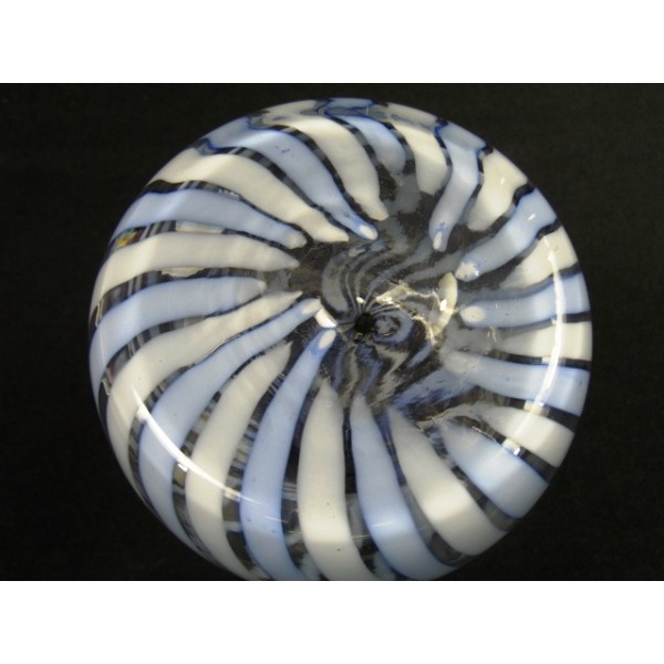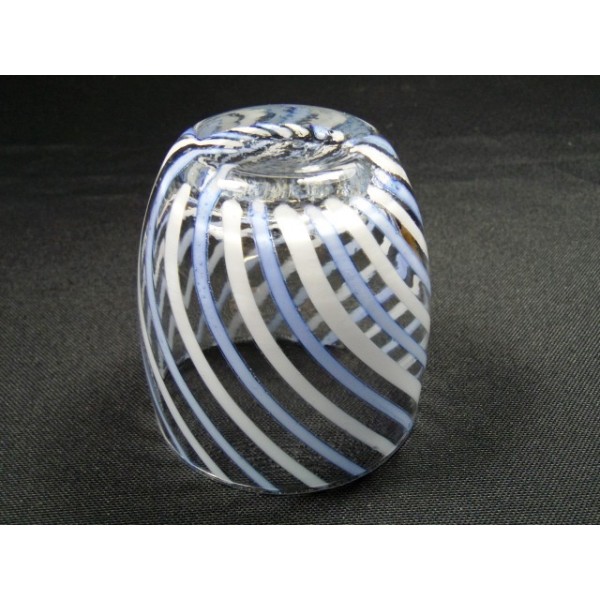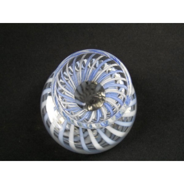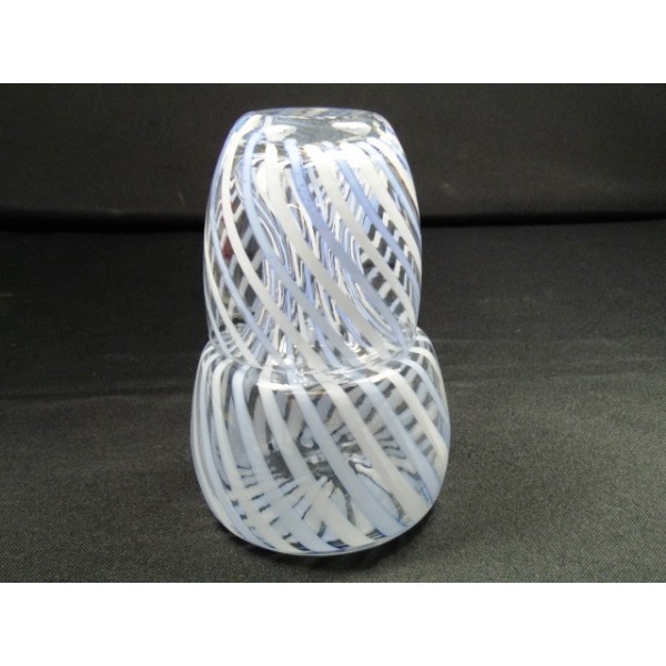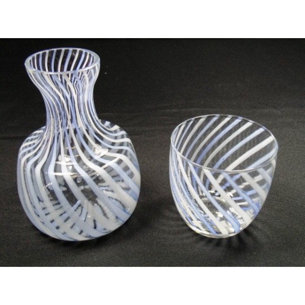 Murano glass night service (or de Clichy), composed of a small jug and a cup with white glass paste inclusion and blue twisted.