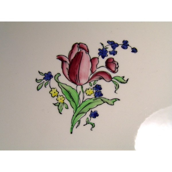 Cakestand Gien faience, painted decoration in hand "Lorraine", eared