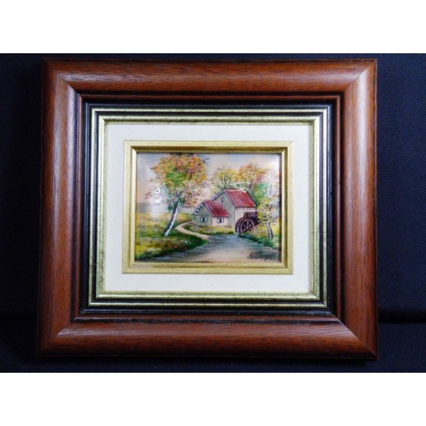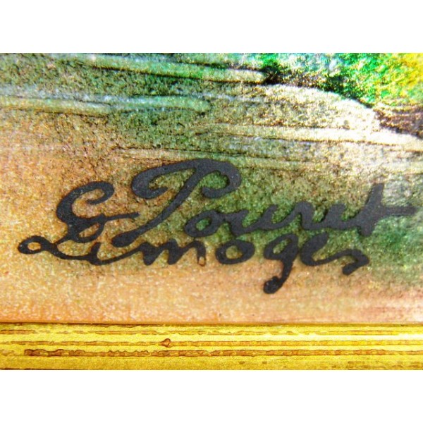Table Limoges enamels signed Pouret Christiane Limoges, contained a mill, with warranty certificate on the back (see photo)