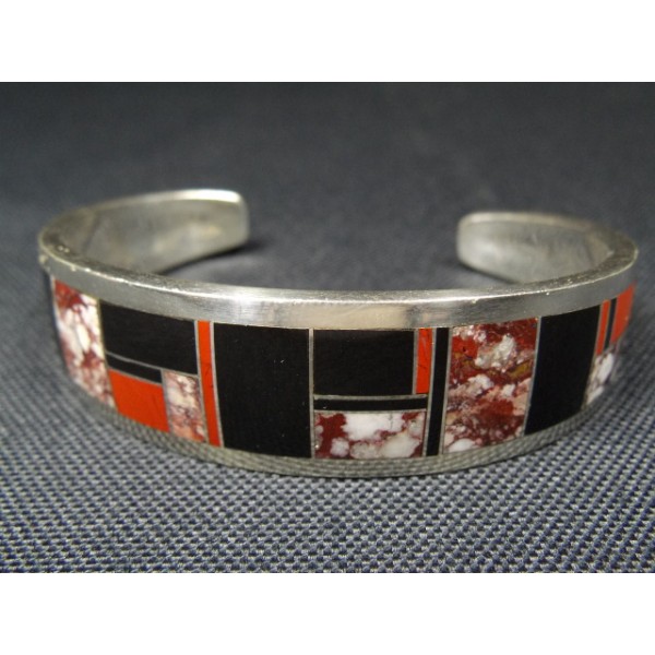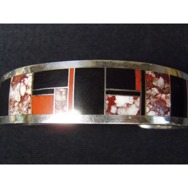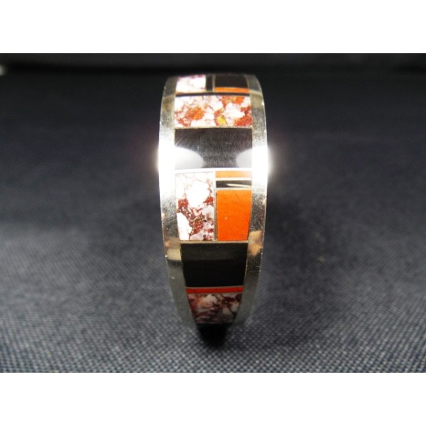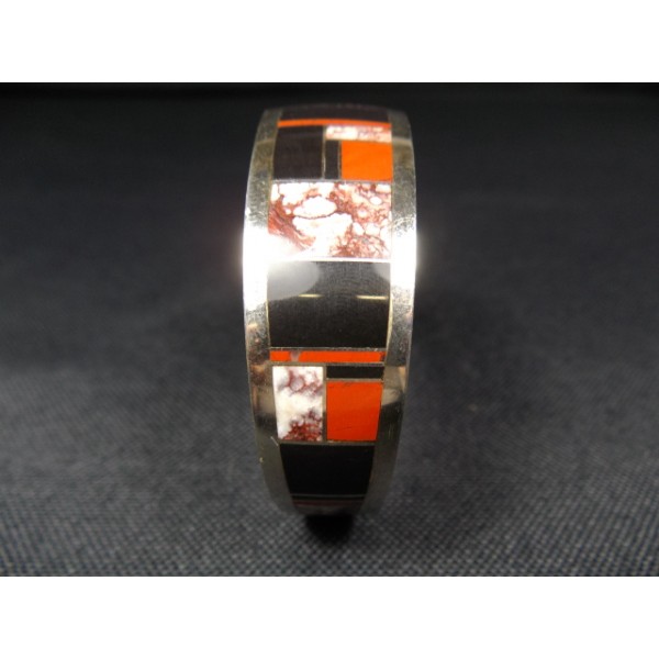Open bracelet silver adorned with precious stones (onyx, carnelian ...) signed Manygoats Navajo crafts, from USA.