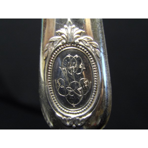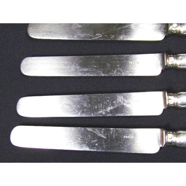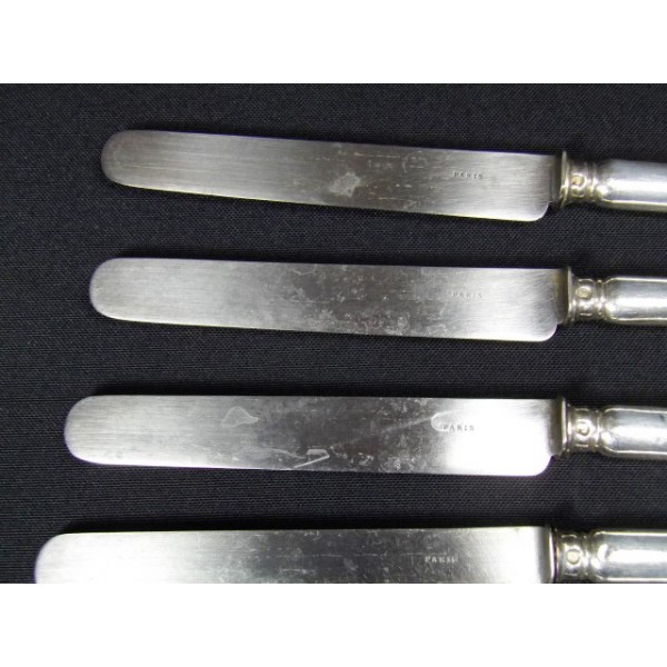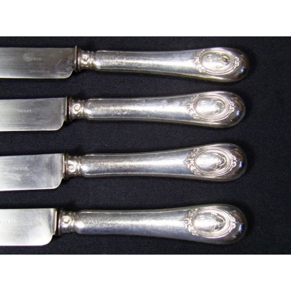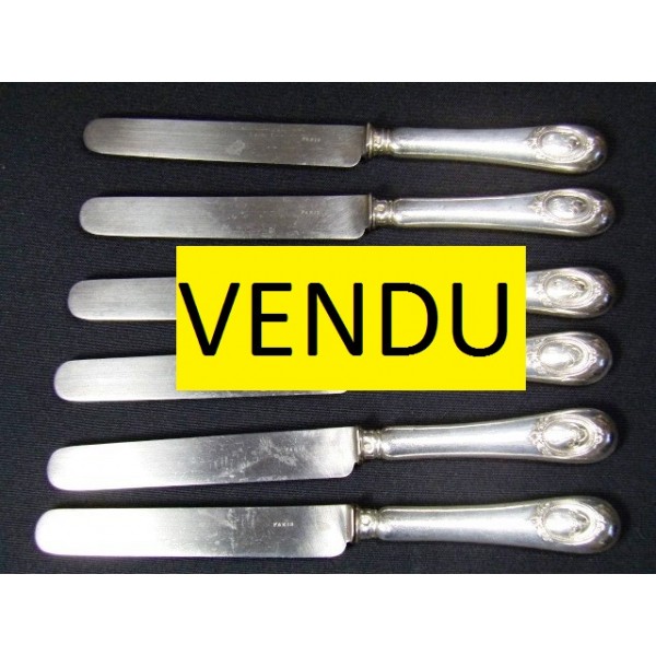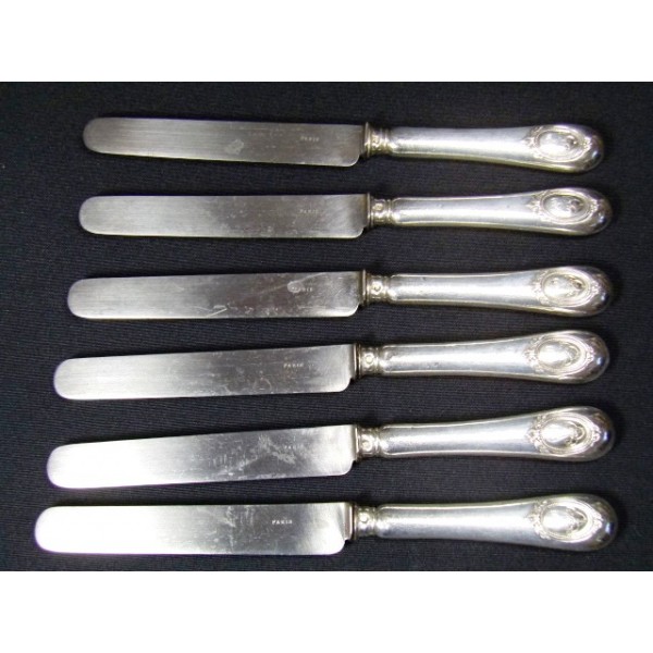 Set of 6 round table knives stuffed silver engraved steel blades Paris, encrypted medallion decor (GL), the home and Herbet brothers, circa 1900.