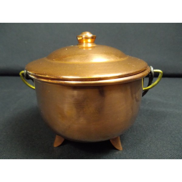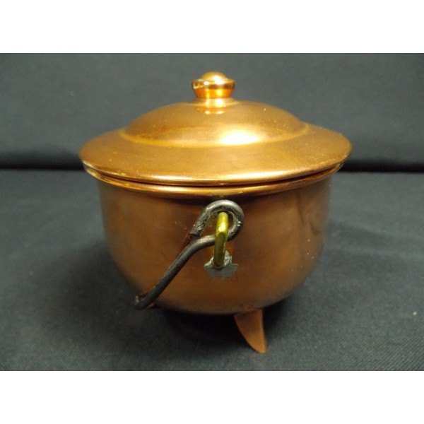 Very nice pot of copper, small covered pot on three legs with no apparent mark.
