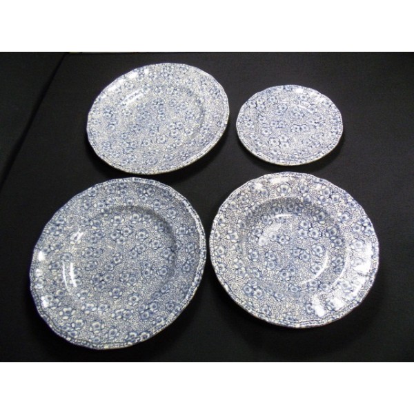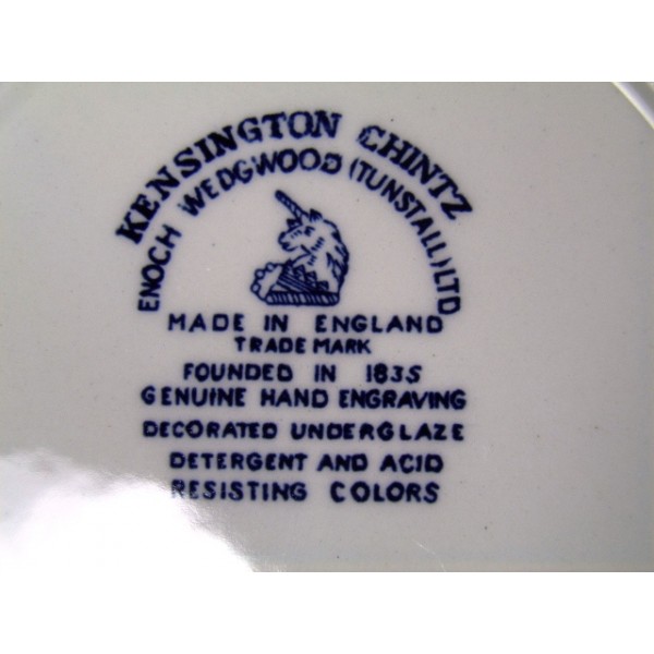 Small batch of plates English earthenware stamped Kensington Chintz, liberty blue décor, consisting of 2 plates, a bowl and a dessert plate.