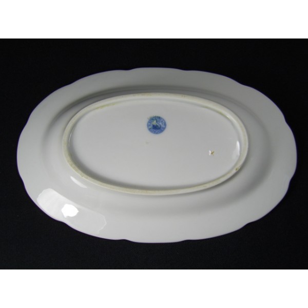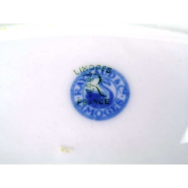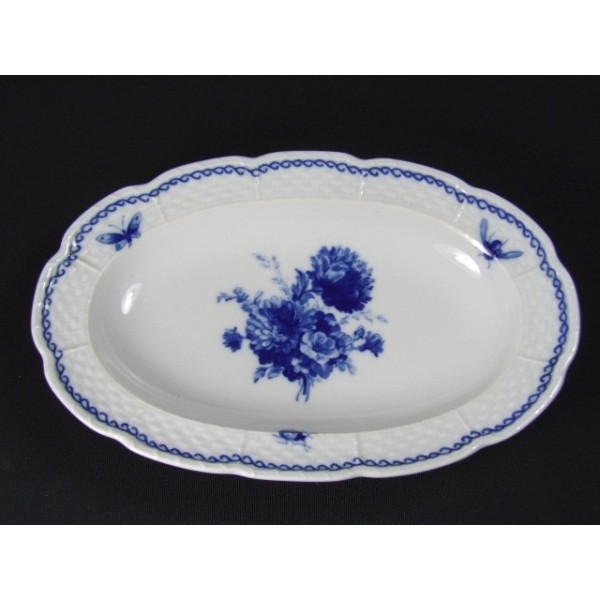 Ravier Raynaud Limoges porcelain, blue décor of flowers and insects, basket relief chantouré edge former