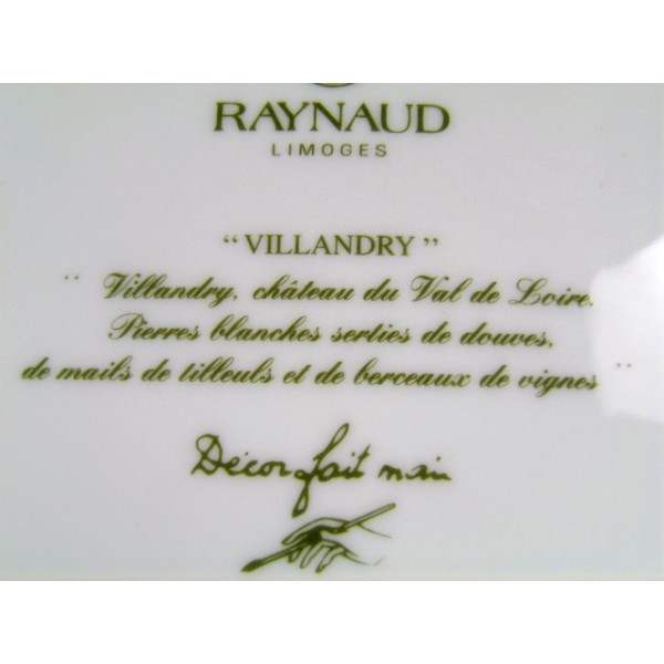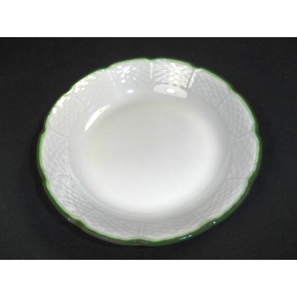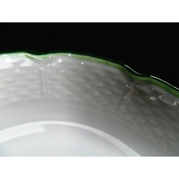 Soup plate porcelain cap Raynaud Limoges, model Villandry, edging hand painted green decor, chantouré edge printing work of wicker.