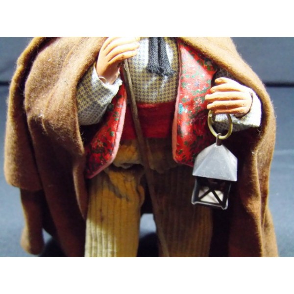 Santon of Provence terracotta signed Jean-Pierre Marinacci Greoux, representing a shepherd with a stick and a lantern.