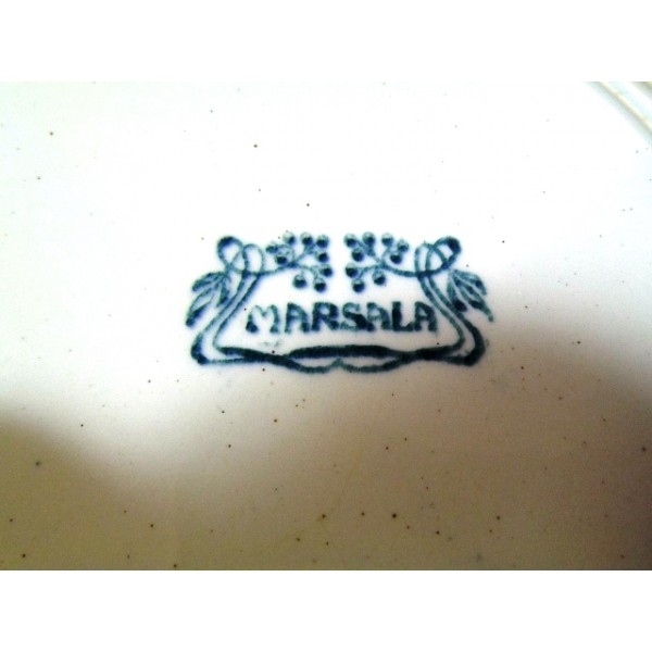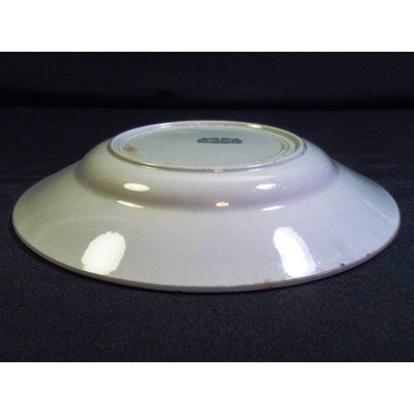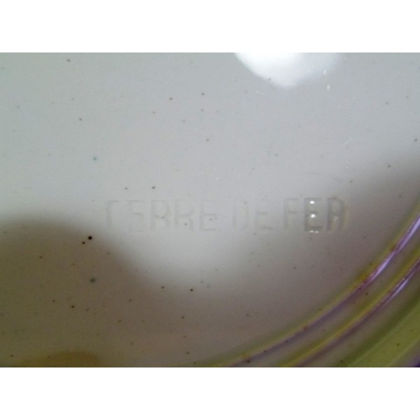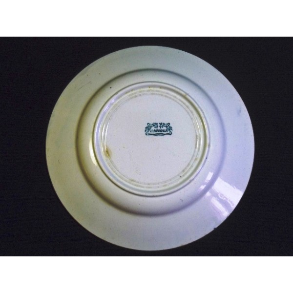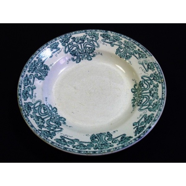 Earthenware soup plate model Terre de Fer Marsala, flower decoration of green poppy art nouveau era 1900.
